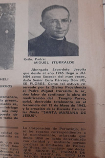 << Recuerdo el ambiente agradable de la escuela. El orden y la disciplina; la camaradería entre los niños asistentes y la cercanía del sacerdote Miguel Iturralde, quien nos mostraba mucho afecto e incluso, era nuestro acompañante en los recorridos que realizábamos por las campiñas de la parroquia, Aguafria, Andarieles, Pechichal Adentro, hasta donde fuimos a visitar a conocidas familias como la Giler, Santana, Carbo y Cevallos. Junto al religioso siempre íbamos, cada uno en su bicicleta, con Aristarco Vera, Alfredo Villavicencio, Rodrigo Alvarado y otros más, cuyos nombres se me escapan.