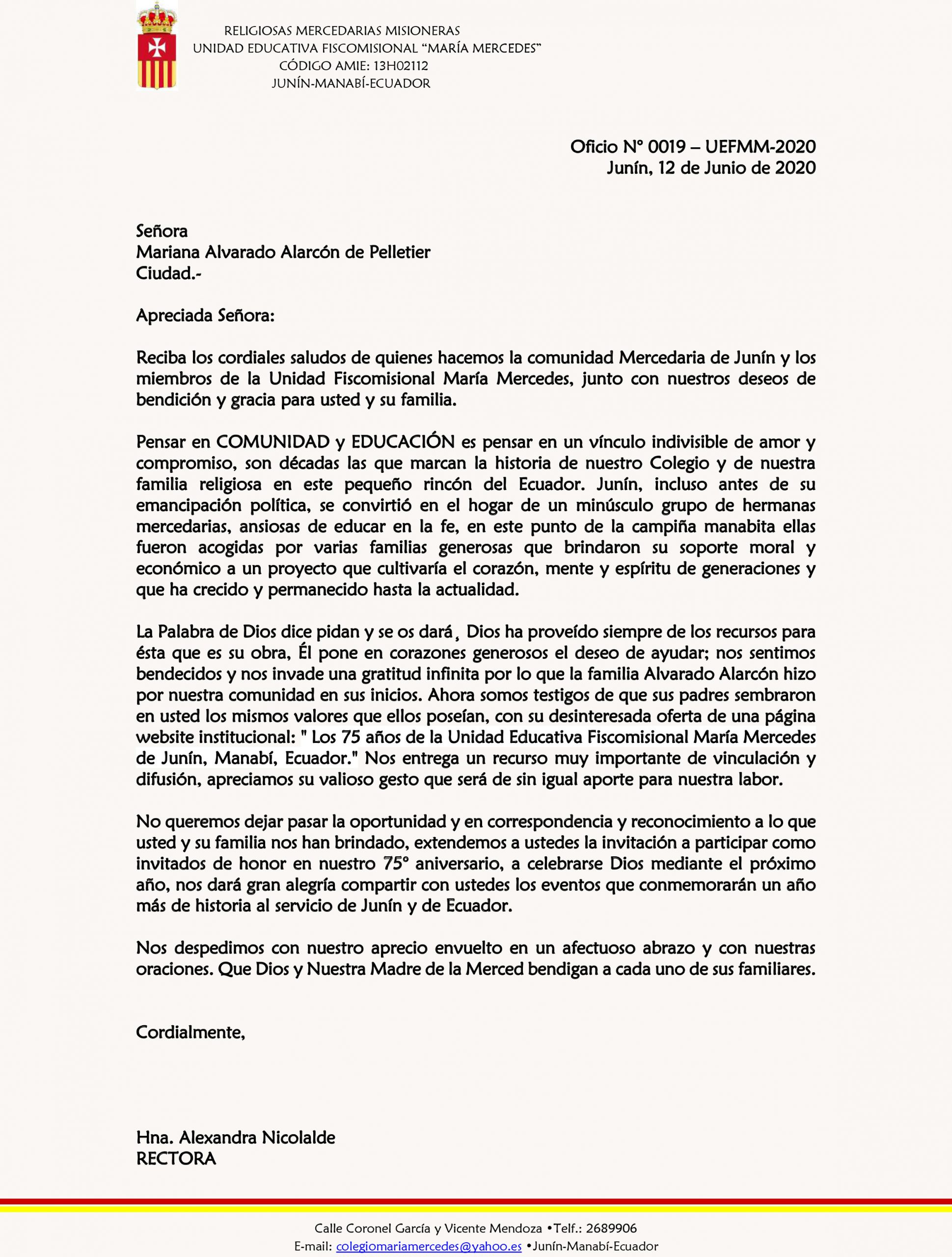 (052)689-906 educar@mariamercedes.edu.ec Junín, Manabí, Ecuador, Sudamérica Search Close Inicio Quienes Somos Misión y Visión Historia Antecedentes Previos Proyecto – UEFMM Proyecto – UEFMM – Revisado Carta de Mariana Oficio de la Rectora – UEFMM Memorandum de Rodrigo Nuestra Historia Autoridades Código de Convivencia Himno Comunidad Docente Perfil de Docentes Nuestros Docentes Estudiante Perfil del Estudiante Abanderados Consejo Estudiantil Padres de Familia Áreas CTP Lengua y Literatura CTP Matemáticas CTP Ciencias Naturales CTP Ciencias Sociales CTP Educación Cultural y Artística CTP Educación Física CTP Lengua Extranjera CTP Interdisciplinar Departamentos Rectorado Secretaría Contabilidad Coordinación Académica Inspección DECE Pastoral Contáctenos Donar Menu Inicio Quienes Somos Misión y Visión Historia Antecedentes Previos Proyecto – UEFMM Proyecto – UEFMM – Revisado Carta de Mariana Oficio de la Rectora – UEFMM Memorandum de Rodrigo Nuestra Historia Autoridades Código de Convivencia Himno Comunidad Docente Perfil de Docentes Nuestros Docentes Estudiante Perfil del Estudiante Abanderados Consejo Estudiantil Padres de Familia Áreas CTP Lengua y Literatura CTP Matemáticas CTP Ciencias Naturales CTP Ciencias Sociales CTP Educación Cultural y Artística CTP Educación Física CTP Lengua Extranjera CTP Interdisciplinar Departamentos Rectorado Secretaría Contabilidad Coordinación Académica Inspección DECE Pastoral Contáctenos Donar Oficio de la Rectora - UEFMM